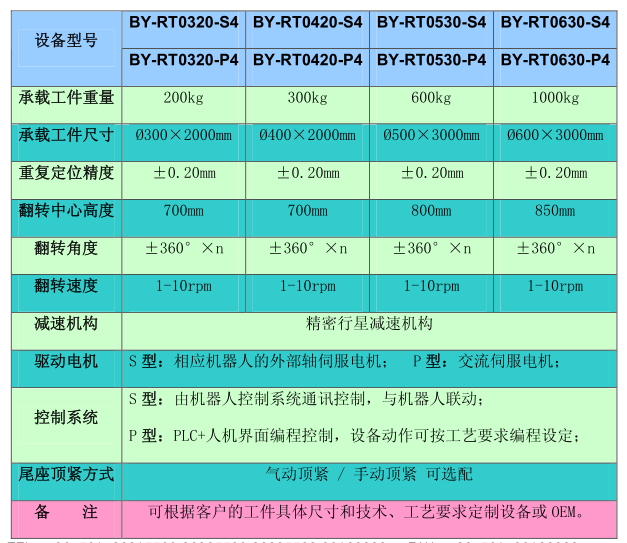 BY-RT XXXX-S(P)4系列 焊接機器人外部軸-- 頭尾架式自動(dòng)翻轉變位機